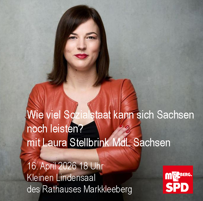 In diesem Jahr startet unsere erste Ortsvereinssitzung öffentlich: Um 18 Uhr treffen wir uns im Kleinen Lindensaal mit der Landtagsabgeordneten Laura Stellbrink. Bringt eure Fragen zur Landespolitik in Sachsen mit. Wir freuen uns auf eine umfassende Diskussion. "Wie viel Sozialstaat kann sich Sachsen noch leisten?"